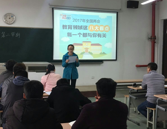 最后由张晖老师带领大家一同学习了两会期间与教育领域相关的提议,其中包括教育信息化,教育扶贫,民办教育,校园安全,随迁子女就学,减轻员工课业负担,高考改革,校园贷现象的政策等。张晖老师要求各位党员要经常关注国家时政要闻,要以优秀党员的标准要求自己,感染其他同学,使研究生的管理上升到一个新的平台。