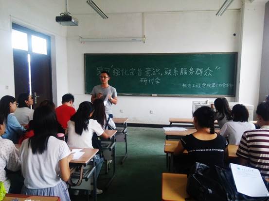 2016年09月09日,太阳成tyc122cc第十四党支部在工二-501召开主题为“强化宗旨意识,联系服务群众”专题研讨会,会议由黄彦军同志主讲。