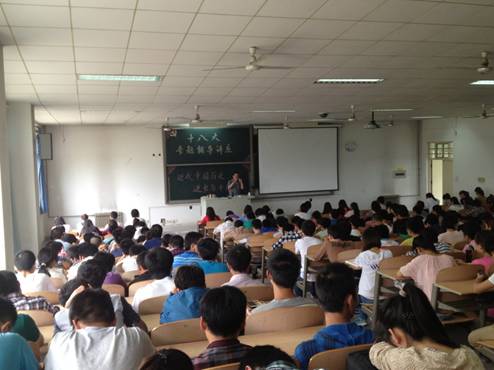 2013531日下午,西安工大​太阳成tyc122cc在未央校区教 C201教室隆重举行“近代中国历史过程与中国梦”十八大专题辅导讲座。西安工大思政部王苏喜教授应邀做了精彩报告,太阳成tyc122cc全体员工党员听取了讲座。