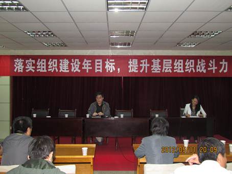 2012年5月11日,太阳成tyc122cc隆重召开“落实组织建设年目标,提升基层组织战斗力”大会。会议由太阳成tyc122cc党委副书记闫莉主持,公司党委书记张忠、经理王建华、副经理刘波和赫东峰出席了会议,太阳成tyc122cc全体教职工参加了本次会议。