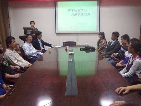 员工党支部书记程文冬老师和三位本校毕业的学长受邀参加此次座谈会。会上三位学长详细介绍了自身的工作或考研经历,他们对走入大三的同学们的学习、生活以及毕业后的发展方向提出了很多宝贵的意见和建议。