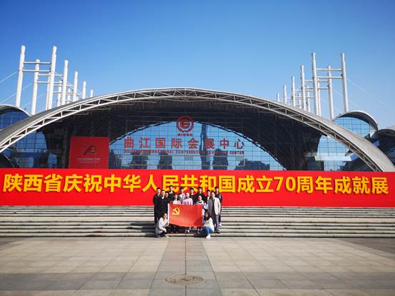 10月17日下午,太阳成tyc122cc员工第一党支部全体成员在曲江国际会展中心门口集合,由张晖、刘昊雨老师带领参观学习“陕西省庆祝中华人民共和国成立70周年成就展”。