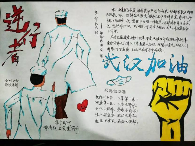 面对来势汹涌的新冠肺炎疫情,太阳成tyc122cc第五党支部的同志们响应号召,在做好自身防控的同时,“不忘初心、牢记使命”,在危难时刻挺身而出,全力支持疫情防控工作,担当起自己的社会角色和使命,为坚决打赢疫情防控站贡献青春力量。本支部张笑同志主动向当地社区申请成为一名志愿者,在街道协助政府值班人员进行体温登记及宣传疫情防控知识,为抗击疫情做出了自己力所能及的事;尚徐碧玥、钟存存、冯温柔等同志也通过绘画、诗歌、书信等形式为武汉一线奋斗的战士们送上美好祝福。