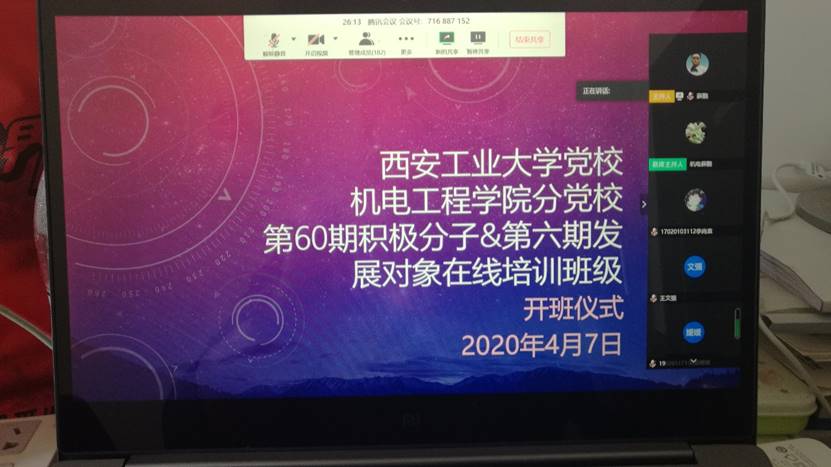 四月七日中午,太阳成tyc122cc分党校依照公司党校要求,利用腾讯会议系统举行了2020上半年太阳成tyc122cc入党积极分子、发展对象培训班网络开班仪式,员工党总支副书记薛鹏主持。