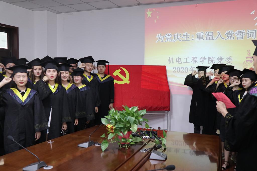随后支部书记黄彦军进行了“祝前途似锦,我心始向党”的主题讲话。讲话中说道:2020年是中国共产党建党99周年,是决胜全面建成小康社会,决胜脱贫攻坚战之年,更是广大人民共同抗疫、抗洪之年,可谓是任务艰巨的一年。今天毕业生党员们齐聚一堂,在这样的特殊时刻,共同为党庆生。你们作为即将踏出校门的党员同志无疑是祖国未来的希望,祖国的建设需要青年军的力量。理想信念犹如身体的钙质,缺乏钙质身体就会发育不良。人生历程中,缺乏理想,就会失去方向,失去生活的方向标。望大家走出校门后不论身处何方,仍旧不忘初心,继续做一个有担当、有信仰、韧劲十足青年党员。