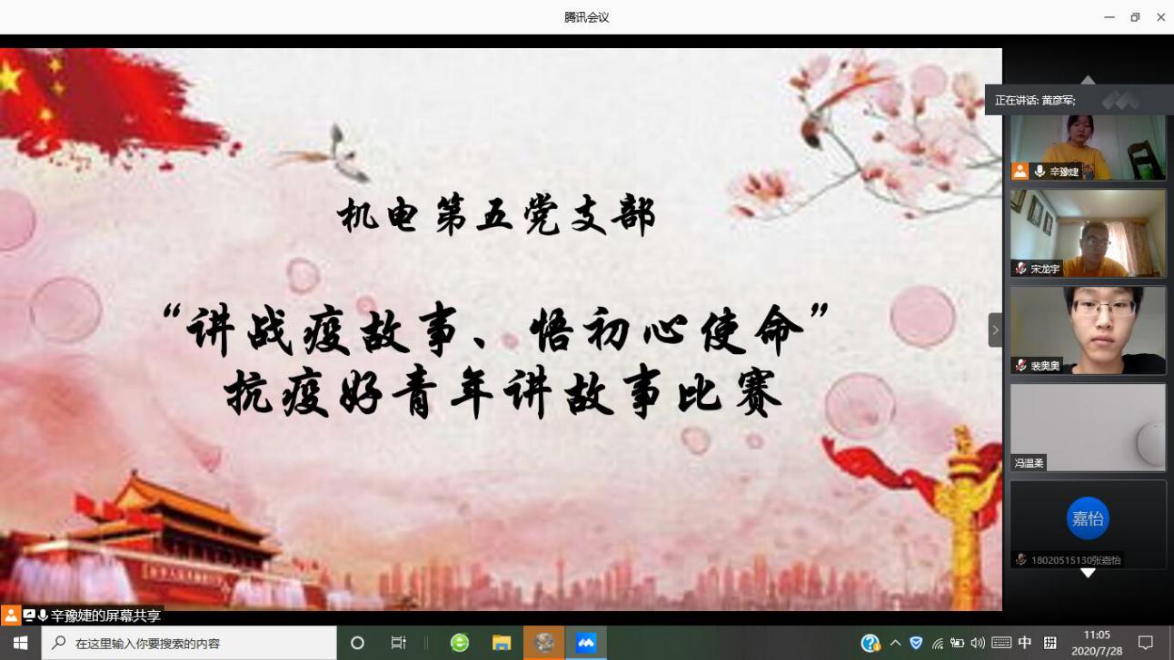 为了更好的宣传疫情防控、弘扬战疫精神、响应党的号召、落实“四个一”行动、发挥老员工党员模范带头作用。太阳成tyc122cc员工第五党支部于2020年7月28日通过“腾讯会议”平台召开了“讲抗疫故事,悟初心使命专题组织生活会。会议由太阳成tyc122cc员工第五党支部书记黄彦军同志主持,支部全体党员同志参加。