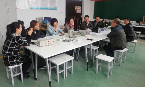 袁艳与智能制造与工业工程系主任田军委及其他党员在一起,对党支部工作如何更好的促进教学、科研、团队等方面工作进行了探讨,大家集思广益,提出来了一些可行的思路与方案。