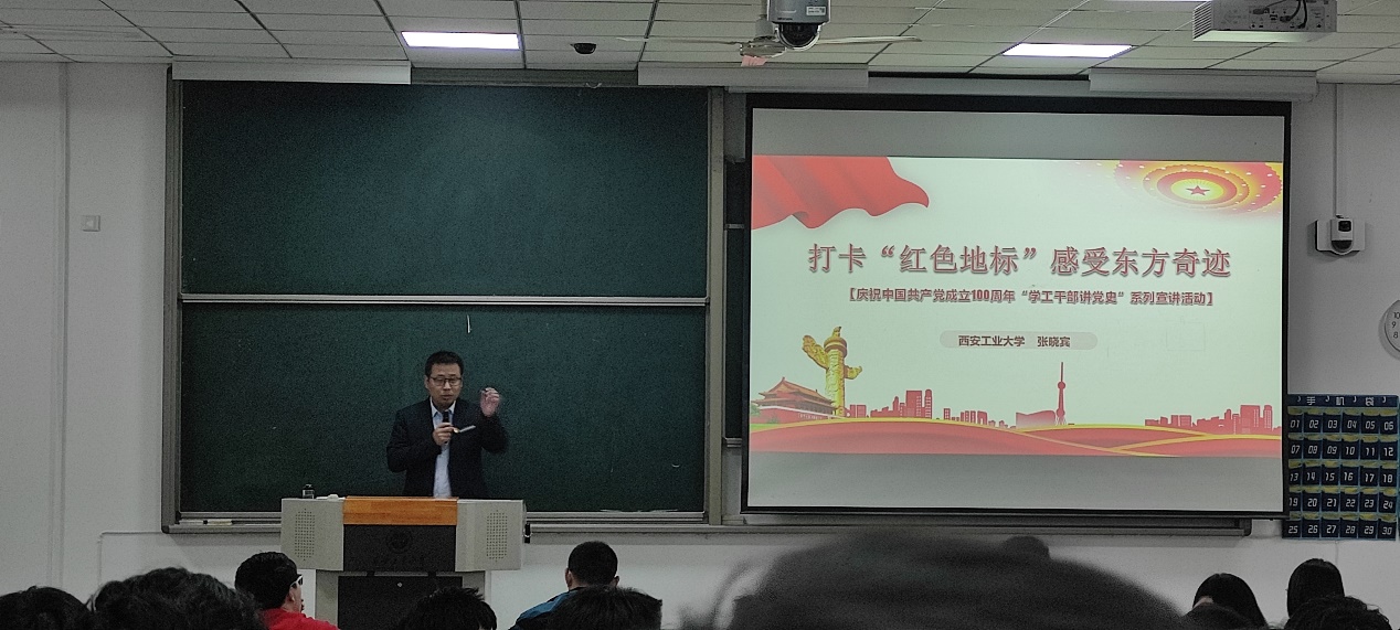 4月12日晚18时,太阳成tyc122cc在教1-104开展了太阳成tyc122cc“学工干部讲党史”系列宣讲活动。此次讲座邀请艺术与传媒公司辅导员张晓宾老师主讲,太阳成tyc122cc各年级230余名同学参加本次活动。