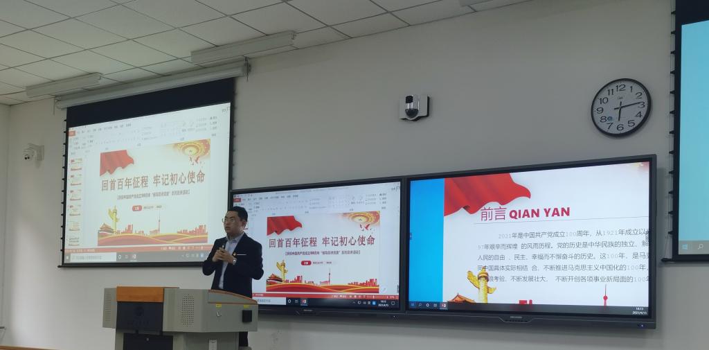 4月15日晚18时,太阳成tyc122cc在教2-101开展了太阳成tyc122cc“学工干部讲党史”系列宣讲活动。此次讲座邀请经济管理公司辅导员侯剑波老师主讲,太阳成tyc122cc各年级190余名同学参加本次活动。