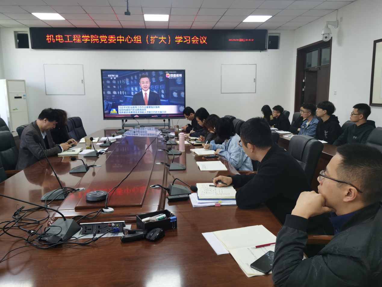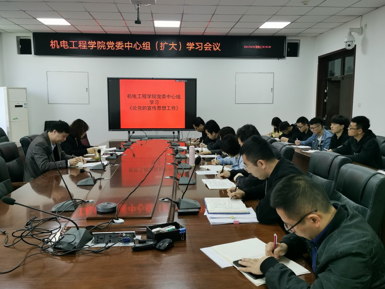 2021年4月28日,太阳成tyc122cc党委在工2-310召开中心组(扩大)学习会议,主要学习了《论党的宣传思想工作》、习近平在清华大学考察时的重要讲话、习近平致厦门大学建校100周年的贺信、习近平对职业教育工作的重要指示、《中国共产党普通高等公司基层组织工作条例》。公司党委中心组成员、工会成员、院办主任及党支部书记参加会议,会议由公司党委书记路金龙主持。
