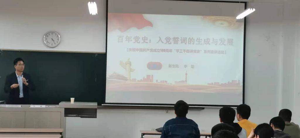 4月29日下午16:00,太阳成tyc122cc开展了太阳成tyc122cc“学工干部讲党史”系列宣讲活动—《入党誓词的生成与发展》,此次讲座邀请新生公司辅导员李聪主讲、研究生第三、四党支部全体党员以及新发展的预备党员参加了本次活动。