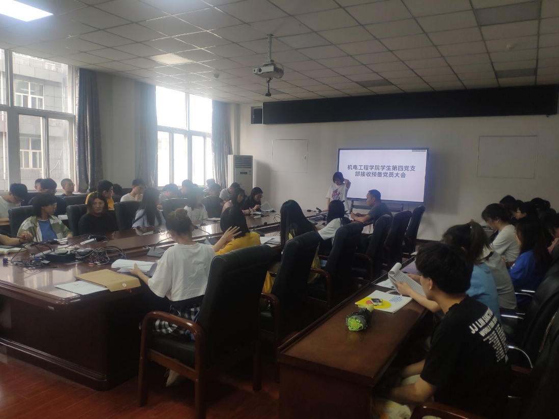 会议之初,文勃对党支部目前的各项情况做了简要阐述,对即将进入员工第四党支部的24名同学表示欢迎,文勃希望新加入的24名同学,要端正思想态度,坚定信仰,把政治标准放在首位,做好时刻接受党组织检验的准备。大会第二项,张宸宇、王思瑶等24名同学依次发言,讲述自己的入党动机、对党组织的认识以及未来要落实的学习工作计划等。发言结束,支部党员对其中存在问题给予指导意见,希望他们能记住最初的这份初心,并为此付诸实际行动,严格要求自己,向优秀党员看齐,努力做心中有信仰,行动有力量的党员。最后,经民主投票评议,具有表决权的正式党员14名,实到14名,14票赞成,0票反对,0票弃权,一致同意以上24名发展对象转为预备党员。