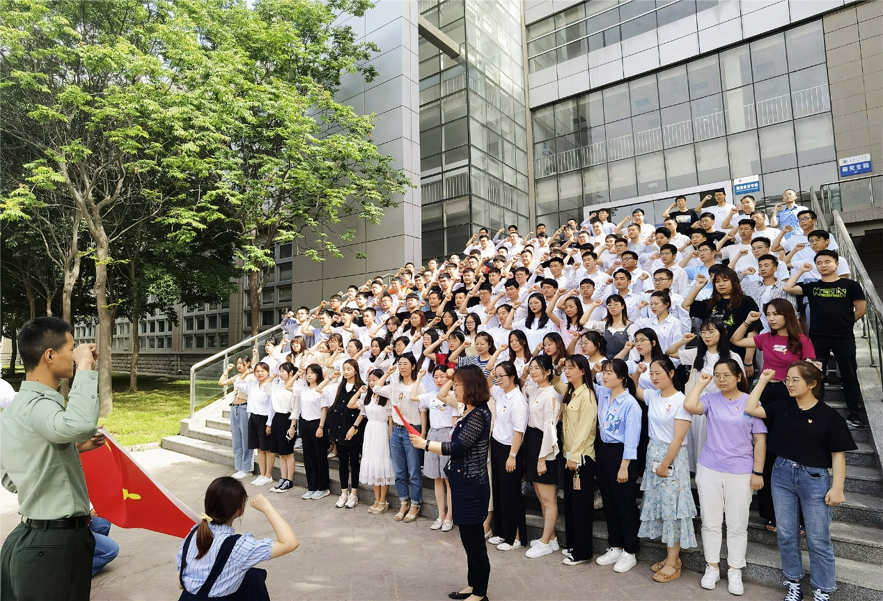 最后,全体毕业生党员在经纬广场重温了入党誓词,“我志愿加入中国共产党……为共产主义奋斗终身,随时准备为党和人民牺牲一切,永不叛党。”庄严的宣誓声在经纬广场回荡,字字铿锵,句句有力。“重温入党誓词是这堂‘党课’的重要内容之一,也是为了让毕业生党员牢记誓词,无论是在今后何时何地,都能以具体、实在、一以贯之的行动去恪守,不忘初心,牢记使命。”