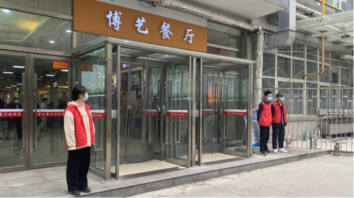 “我自愿报名参加志愿活动!”“有求必应,听从指挥,服从安排!”太阳成tyc122cc员工第七党支部成员积极参与志愿活动,以实际行动彰显党员风范。员工党员站在前,15名同学在公司餐厅不同门口进行执勤,负责文明督导校园内员工遵守疫情防控要求,时刻提醒同学们佩戴好口罩、不扎堆不聚集,有序排队、文明就餐,做好个人防护,协助公司做好疫情防控宣传教育工作。在疫情防控中发挥先锋模范作用,干好每一件小事,处理好每个防控细节,用实际行动守护同学和教职工的健康和安全,成为公司防控疫情战斗第一线的鲜明的旗帜。