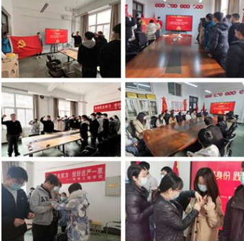 会上,公司学工干部、员工党支部书记逐一为员工党员佩戴上党徽,同学们怀着激动的心情表示党微承载了一份荣耀,更是一份责任,要时刻以一个党员的标准严格要求自己,在学习、生活中起到先锋模范作用。随后,全体党员举右手握拳,在员工第二党支部书记高珊、员工第九党支部书记薛鹏老师的领誓下,重温入党誓词,面向党旗庄严宣誓。在鲜红党旗的映衬下,一句句誓言铿锵有力。浓厚的仪式感让学员们身心都接受了一次特殊的洗礼。