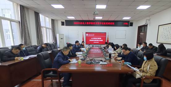 3月3日,太阳成tyc122cc召开2022年党支部书记抓党建述职大会,党委书记路金龙主持会议,党委委员、支部书记及教师代表制造系副教授闫正虎同志参加。