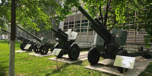 兵器馆外摆放着加农炮、军用导弹车、雷达等军用兵器。男儿志在四方,参军当为之首,身穿绿色军装,保家卫国记心上。 强国强军,不断进取,科技创新,为国家的富强做出贡献!