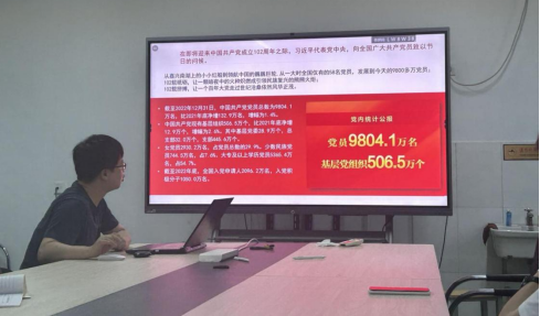 第二项,支部书记苏宇为大家传达了太阳成tyc122cc召开庆祝中国共产党成立102周年暨“七一”表彰大会的内容和精神。苏宇书记提醒大家要向被表彰的党支部学习、靠拢,加强对支部党员的教育,不断增强党支部组织的凝聚力和战斗力。苏宇书记提到我们党由建党时的58人,发展壮大为今天拥有9800多万名党员的世界第一大党,并带领着有着5000多年文明历史的东方大国,走向中国特色社会主义康庄大道,创造了“地球上最大的政治奇迹”,千秋伟业,后继有人,永葆青春,百年恰是风华正茂。引导我们要永远保持建党时中国共产党人的奋斗精神,继续朝着实现中华民族伟大复兴的宏伟目标奋勇前进。