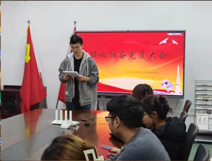 会议之初,文勃带领全体成员对新发展的3名同学表示欢迎,希望新加入的3名同学,端正入党动机,向优秀党员学习。吕展辉等三名同学依次阐述自己的入党意愿,并汇报了自己在思想、学习和生活方面的情况。