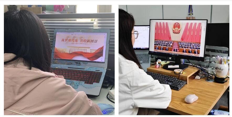 公司党委组织各班级、党支部、团支部、各系师生通过线上、线下等形式,收听收看全国“两会”开幕会直播盛况,号召广大师生把强国建设、民族复兴融入自身学习工作中,积极响应党的号召,肩负时代重任,推进科技自立自强。