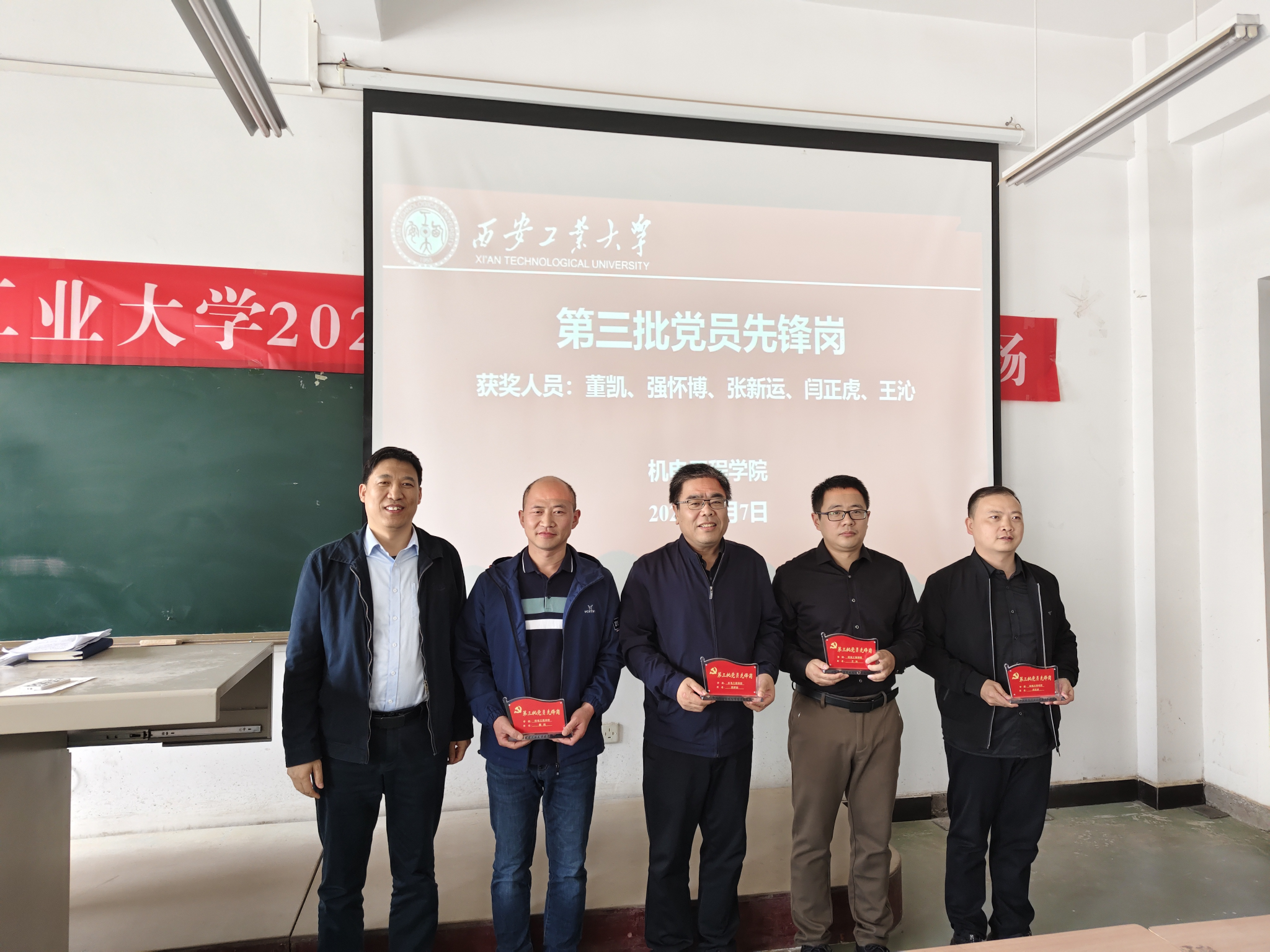 会上,程新峰介绍了公司设立党员先锋岗基本情况,回顾了工作开展情况。他指出,公司自2020年设立党员先锋岗以来,先后共设立三批先锋岗,公司共有15名同志获此殊荣。近年来他们在学习、工作和生活中通过亮身份、树形象,不断增强宗旨意识、大局意识、责任意识、服务意识,积极投入到公司教学、科研、管理、服务等工作中,特别是疫情防控工作,有力守护全校师生生命健康安全,诠释一名共产党员在危难险重时刻的责任担当,切实发挥出党员的先锋模范作用。第三批党员先锋岗教师为:董凯、强怀博、张新运、闫正虎、王沁。经理王洪喜为获奖老师颁发标牌。