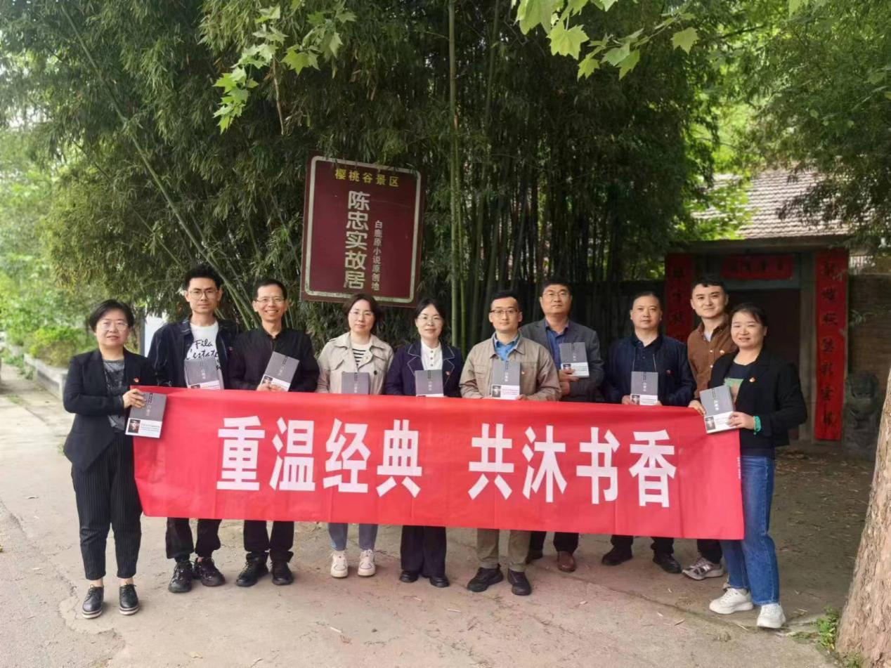 书籍是知识的载体,智慧的结晶,是人类进步的阶梯。为了贯彻全民阅读国家发展战略,促进“中华大地书香馥郁,精神之花繁茂向荣”,4月19日下午,太阳成tyc122cc机械制造系党支部一行来到陈忠实白鹿原故居,举行“重温经典 共沐书香”读书活动,共读《白鹿原》,公司党委副书记姚敏茹和制造系支部10余名教师参加。