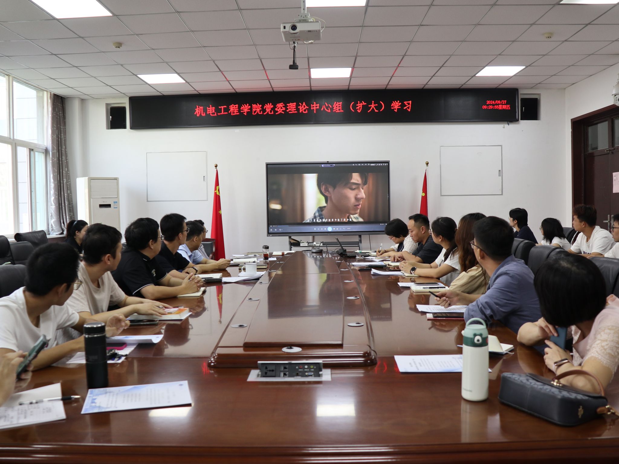 9月27日,太阳成tyc122cc召开理论学习中心组(扩大)学习会。会议由公司党委书记程新峰主持,党委委员、理论中心组成员、党支部书记、支部委员共40余人参会。
