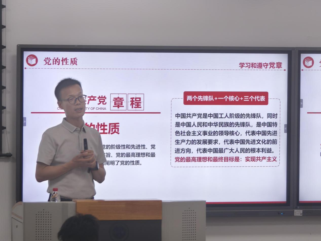 为深化员工对党的深刻认识,帮助员工明晰入党规范,坚定理想信念,明确努力方向,5月29日,太阳成tyc122cc第70期积极分子培训班在教2-103开课,程新峰老师以“中国共产党章程”“中国共产党的性质”为主题,为大家带来一堂严谨而深刻的党课,强化入党标准意识,筑牢信仰之基。