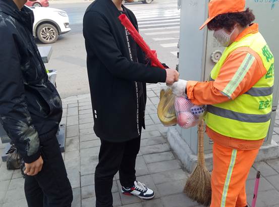 暖阳和煦,情暖入心。活动伊始,面对马路上辛勤工作的环卫工人,志愿者们用水果向其致以敬意。田彪根据工作内容及要求,合理分工,为环卫工人们尽点绵薄之力。大家纷纷拿起手中的劳动工具,向清洁区进军。横躺在马路上的纸屑,逃不过志愿者们敏锐的眼睛;垃圾桶旁的易拉罐,找到了它们最终归宿;隐藏在绿植后的果皮,纷纷被送入垃圾桶。劳动不易,志愿者们用他们的双手,为城市卫生贡献出了自己的绵薄之力。在暖阳的照耀下,此次光荣的清洁活动圆满结束。