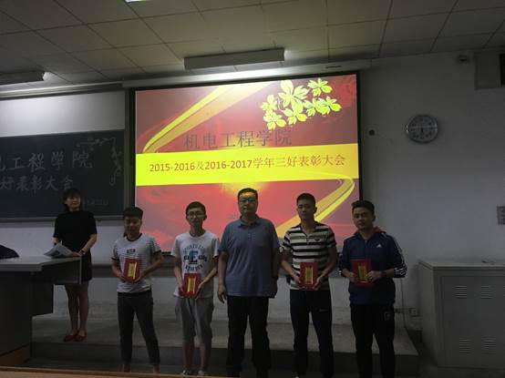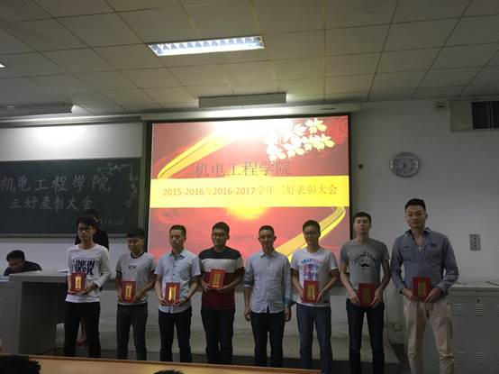 大会开始,张晖老师宣读表彰决定,并对获奖员工表示祝贺,对16级员工寄予希望,本次大会表彰了“三好班级、优良学风班、文明宿舍、国家奖学金、特等奖学金、优秀毕业生、毕业生三好员工、三好员工、优秀员工干部和社会奖学金”共计10类奖项,57位员工代表上台领奖。在激扬的颁奖音乐声中,众位嘉宾依次上台给获奖员工代表颁奖并合影留念。随后,优秀学毕业生代表谢悦上台发表讲话,优秀团支部代表戚攀上台发言并介绍支部情况。会议最后,张晖老师上台对会议做最后总结,并对下一阶段工作予以规划。