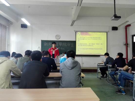 会议伊始,党支部书记张晖同志对2016-2017上半学年党支部工作进行总结及部署2016-2017下半学年工作计划。支部书记张晖同志指出,自十六党支部成立以来,党支部全体党员能严格根据上级党组织指示,组织思想政治理论学习和对中共第十八届六中全会的专题讨论。本学期我们将在上级党组织领导下,继续深入各项政治理论学习工作,并加强实践学习环节。最后支部书记张晖同志强调:党员身份是先进的代表,永远在路上,应该在日常工作生活中做好模范带头作用。