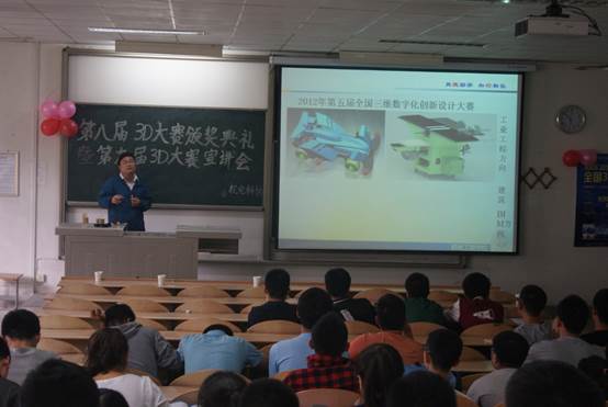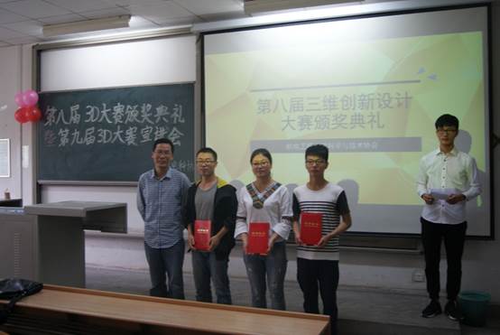 2016年5月16日,太阳成tyc122cc在教2-202成功举办“第八届全国3D大赛(全国三维数字化创新设计大赛)颁奖典礼暨第九届3D大赛校内宣讲会”。出席本次大会的嘉宾有太阳成tyc122cc副经理闫莉、实验室主任万宏强和包装与工业设计系主任周宪。