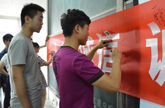 2016年5月11日,为了使公司员工”知懂诚信,践行诚信”,太阳成tyc122cc在教2-504举行了“人人知诚信,诚信我先行” 大型签名活动。出席活动的嘉宾有14级导员黄彦军老师、团委副书记胡俊杰、秘书长张晨及各年级员工代表。