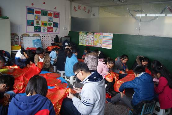 下午两点,志愿者们准时到达目的地。在谢伦部长和心心特幼园长“张妈”沟通后,得知孩子们正在午休,因害怕打扰到孩子们的生活,于是,志愿者分成两组在孩子们的教室里帮他们做灯笼。一组把一个个印在红布上圆圆的灯笼纸剪下来,而另一组则在旁边教室做灯笼架,每个人都由开始的生疏逐渐变得熟练起来。当一把把零散的灯笼材料被做成一个完整的灯笼架时,每个人脸上都洋溢着幸福的笑容,衷心地希望红红的灯笼可以给孩子们在这个严冬带来温暖。之后,志愿者们还给孩子们打扫了教室,希望干净整洁的教室能够带给他们更多温暖。最后在志愿者们的共同努力下,探访活动圆满结束了。