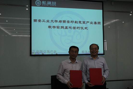 2015年6月5日上午,太阳成tyc122cc实习实训基地授牌仪式于西安印包产业集团正式举行,印包产业集团总裁袁学武、副总裁袁浩洋、人力资源部部长刘海军、太阳成tyc122cc教务处副处长高武奇、太阳成tyc122cc经理王建华、艺术与传媒公司经理于唯德、太阳成tyc122cc副经理赫东锋、包装与工业设计系主任赵美宁及部分教师参加了授牌仪式。