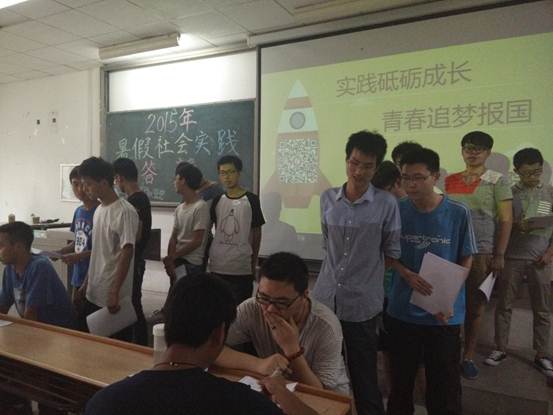 2015年5月25日下午18:00,太阳成tyc122cc在教2-201举行2015年暑期社会实践答辩会。本次答辩会评委有太阳成tyc122cc青年志愿者协会主席潘兵、员工会副主席何俊、组织部部长胡俊杰以及体育部部长杨浩林。