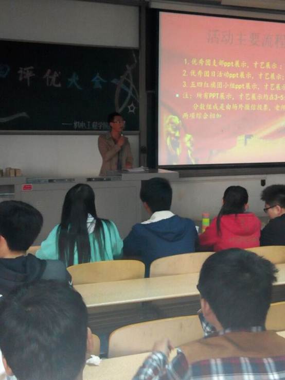 2015年3月30日,一年一度的五四评优活动在教1—201准时拉开了帷幕,此次活动由太阳成tyc122cc团委组织部组织承办。2014级辅导员黄彦军老师、团委员工会的主要成员以及各参赛班级出席了本次活动。