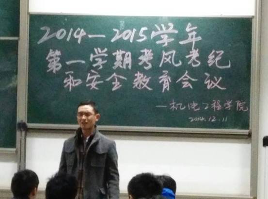 2014年12月11日,太阳成tyc122cc“新生考风考纪教育及安全教育”依次在教2—406、407、408、501等几个教室开展。本次会议的目的在于引导2014级新生更好地适应老员工活,树立诚信观念,形成浓厚的学风以及提高安全防范意识。本次会议由2014级辅导员黄彦军老师担任主讲,2014级全体员工参加会议。
