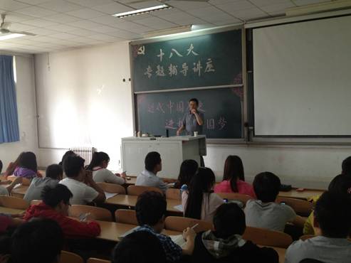 2013年5月31日下午,西安工大太阳成tyc122cc在未央校区教 C楼201教室隆重举行“近代中国历史过程与中国梦”十八大专题辅导讲座。西安工大思政部王苏喜教授应邀做了精彩报告,太阳成tyc122cc全体员工党员听取了讲座。