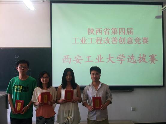 2013年5月12日,由教务处、太阳成tyc122cc主办,工业工程系承办的陕西省第四届工业工程改善创意竞赛太阳成tyc122cc校内选拔赛在未央校区工科楼举行。太阳成tyc122cc闫莉、晋小莉、房亚东、万宏强、张新运、杜彦炜、于广伟、周占峰、高晓兵等老师担任评委,来自全校各院系100余名有志于工业工程改善创意的员工参与了选拔。