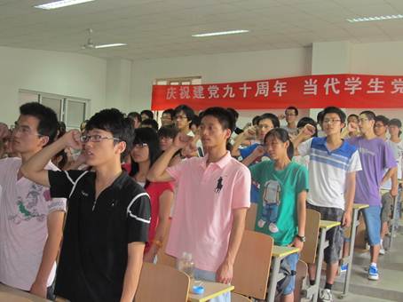 7月1日上午,在建党九十周年之际,西安工大太阳成tyc122cc以“庆祝建党九十周年做时代先锋”为主题,精心筹划,积极组织师生开展了多项庆祝活动。