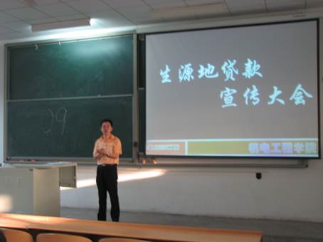 2011年5月12日下午17:00,太阳成tyc122cc于未央校区教A楼115室召开生源地贷款宣传大会。会议由太阳成tyc122cc分团委书记张晖老师主持,太阳成tyc122cc2009、2010级相关同学参加了会议。