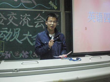 在10级新生代表裴翠萍、刘雄飞充满激情的诗朗诵后,太阳成tyc122cc“学习经验交流暨英语四级动员大会”正式拉开帷幕。张晖老师对开学至今的学习情况进行总结后,在一片掌声中来自08级的何运超同学就英语学习谈了自己的心得体会,他说,保持良好心态、掌握正确学习方法,以及合理安排时间学习等,都是学习英语的诀窍。接下来,07级学长、太阳成tyc122cc“十佳老员工”侯志松介绍了在搞好学习的基础上参加各种社会活动的必要性,重点强调了专业知识、个人能力和综合素质在大学学习中的相互作用。07级员工、国家奖学金获得者朱文静则介绍了认真完成课后作业和参加实验的重要性。08级员工、国家奖学金获得者马驰对同学们关于学习之外生活的建议也让大家受益匪浅。毕庆、马丽娜、史向荣等学长亦依次就大学学习和生活等诸多问题做了精彩发言。整场大会,10级新生纷纷就自己关心的诸如学习、生活、择业及未来发展等问题与学长们进行了深入交流,气氛热烈而激昂。