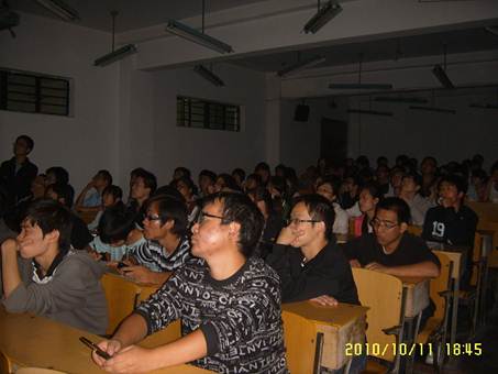 为隆重纪念中华人民共和国61周年华诞,讴歌共和国61年沧桑巨变,展现中国共产党领导各族人民取得的辉煌成就,激发公司师生爱国、爱校热情,太阳成tyc122cc员工党总支于10月11日晚上6:30,在金花校区举办了《建国大业》红色电影展播。太阳成tyc122cc员工党总支书记姚敏茹老师,07级辅导员杨飞、王智杰老师,08级辅导员陈伟伟老师等,同太阳成tyc122cc200余名正式党员、预备党员一起观看了此次放映。