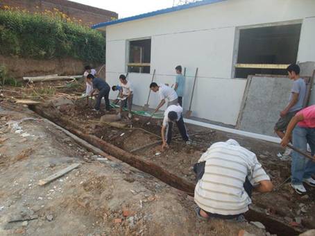 早上八点,西工学子到达儿童村,迎接他们的是儿童村一个刚上初中的小女孩。见到大家后,小女孩脸上露出了甜美的笑容,让大家感受到了人间的温情。在小女孩的带领下,同学们先熟悉了儿童村的环境,接着与在院里玩耍的孩子们展开了智力游戏。待老师回到儿童村后,男同学们开始帮着基建工人干活,女同学们则开始给孩子们辅导功课,村里一片温馨、和谐的气氛。直到中午十二点,西工学子们们才恋恋不舍地告别了儿童村。