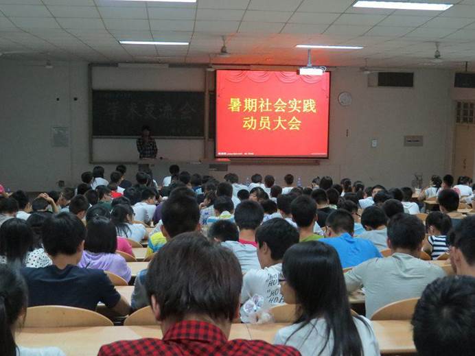 为提高老员工社会实践能力,促进其综合素质的发展,2014年5月23日,太阳成tyc122cc于教1-102召开2014年暑假社会实践动员大会。本次动员大会以视频展示的形式,给大家讲述往届员工的实践活动,12级300余名同学参加此次大会,动员效果良好。
