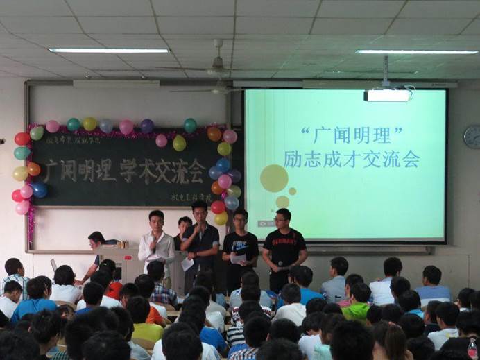 2014年5月20日—21日,教1-102,公司成功举办“放飞希望,点亮梦想”系列活动之“广闻明理,励志成才”学术交流会。公司“十佳老员工”兼重庆大学准研究生李月月、西安交通大学研究生袁晓楠、陕科大优秀毕业生兼准国家公务员张馨月围绕“老员工活成功之道”分别作了精彩的报告。交流会持续两天,使700余名与会大一新生从中受益。