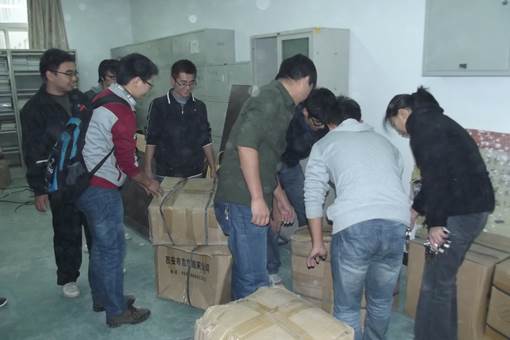 参与本次活动的志愿者们被分为男女两组,每组同学工作两个多小时。女生主要负责资料的摆放以及卫生的打扫,男生主动负起了搬运重大的装满资料的纸箱的责任。其中平时乐于看书的同学发挥了极高的活动积极性与实效性,并有一些学长学姐也参与其中。在老师的指导和带领下,同学们主要从事将打包好的资料摆上书架和将书架上的资料整齐化的工作,大家在工作时轻拿轻放,同时还对书皮翻折的资料予以了修整。同学们看着由自己参与整理好的资料室也流露出满意的笑容。最后,部分参与活动的同学合影留念。