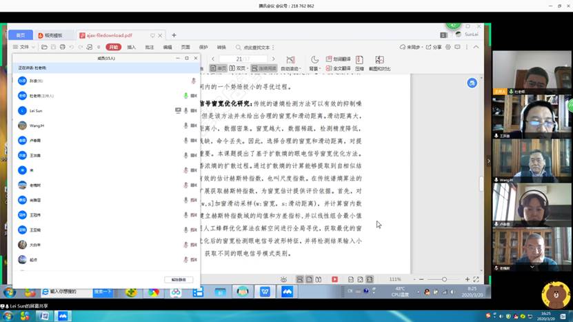 3月20日下午四点,太阳成tyc122cc第四次国基金申报工作推进视频会议如期召开。本次会议由杜虎兵副教授主持,特邀校学术委员会主任王建华教授、太阳成tyc122cc副经理王洪喜教授参与了本次视频研讨。公司部分基金申报老师参加了会议。