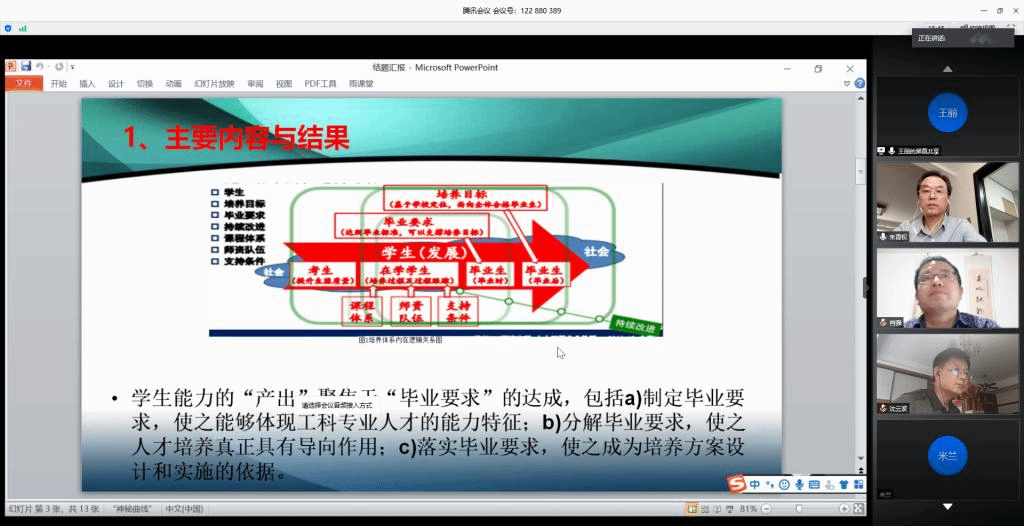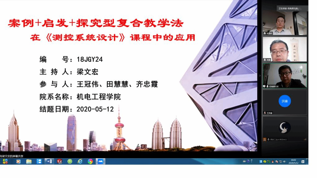 为了做好远程互动式视频答辩,太阳成tyc122cc克服了软件和网络不稳定问题,提前做好各类准备工作,以保证视频答辩的顺利进行。虽然是远程互动式视频答辩,但是线上与线下答辩的流程、要求不变,太阳成tyc122cc教学秘书将所有材料都做了数字化处理,提前将电子版结题答辩材料发给专家审阅,保证线上答辩质量不掉线。整个答辩过程均录屏截图,作为答辩记录留存,坚决确保答辩的公开性和真实性。在答辩过程中,项目负责人分别介绍了项目的预期目标和实际研究进展情况,并围绕项目的创新点、实际教学效果、存在问题和改进措施等做了较详细的汇报。根据项目负责人的汇报,专家组分别进行了问题质询,与项目组进行了充分且深入的交流,并给出了进一步完善的意见和建议。